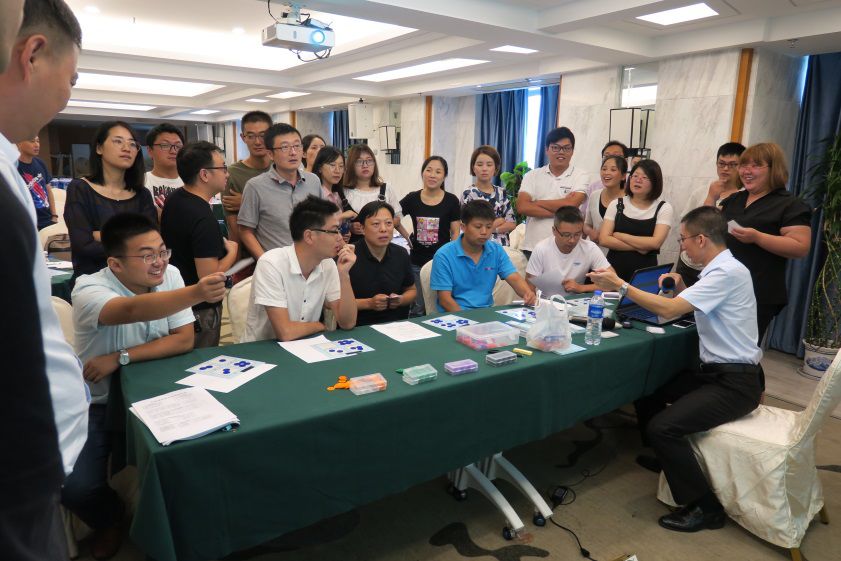 本期培训围绕“管理沟通”展开,9月1日培训第一天,以《稳健经营——非财务经理的财务管理》的沙盘模拟培训课程。学员共分为5组, 模拟推演五家同行业竞争的企业3年的经营,通过各自小组成员的战略定位、市场决策、内部运营、财务分析等方面进行模拟体验和学习,再直观全方位了解企业运营全过程的同时,让参训企业学员深刻认识到企业经营者的不易,并理解企业三大报表对于指导企业经营决策的作用,理解从企业整体经营管理角度去审视部门及岗位工作对于企业经营绩效达成的全局性作用。1天近8个小时的课程虽然很“烧脑”,但所有学员都很认真积极参与、努力思考决策,取得了超预期的效果。